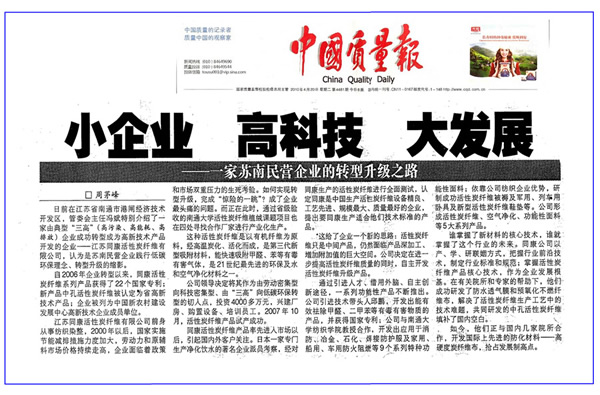 中國質量報——小企業、高科技、大發展"一家蘇南民營企業的轉型升級路"